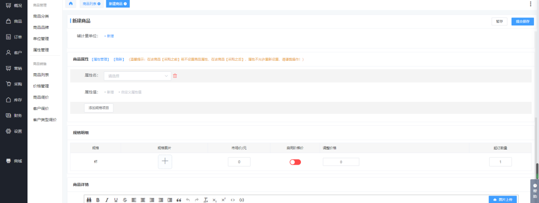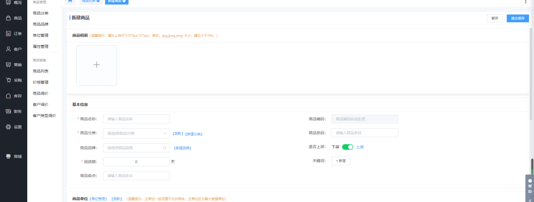 創(chuàng)建企業(yè)選擇了單店鋪后,我們發(fā)布商品時可直接將商品在商品列表進(jìn)行新增發(fā)布到各個店鋪中,去除了在商品資料頁面填寫商品信息,又到商品列表進(jìn)行發(fā)布,因為是單店鋪,所以發(fā)布商品時無需選擇商鋪,在商品列表發(fā)布商品選擇好商品規(guī)格單位后直接給商鋪規(guī)格設(shè)置價格就可以發(fā)布上架了。