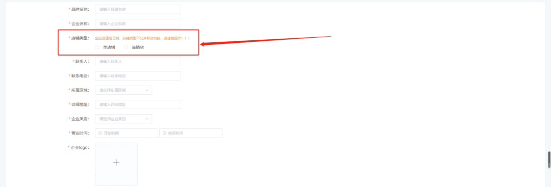 我們商家注冊完我們商城后臺,需要創(chuàng)建我們的企業(yè),創(chuàng)建企業(yè)時,就需要選擇我們的商鋪類型了,商鋪類型分為多店鋪與單店鋪。