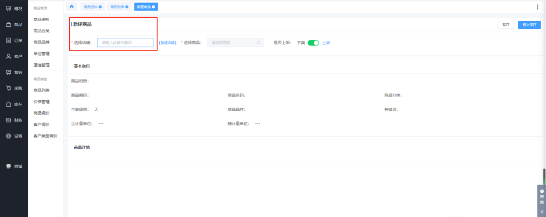 創(chuàng)建企業(yè)選擇了多店鋪后,我們發(fā)布商品時就需要先把商品錄入到商品庫中,也就是我們后臺中的商品資料,在添加完商品資料后,將商品在商品列表下進(jìn)行發(fā)布到各個店鋪中。