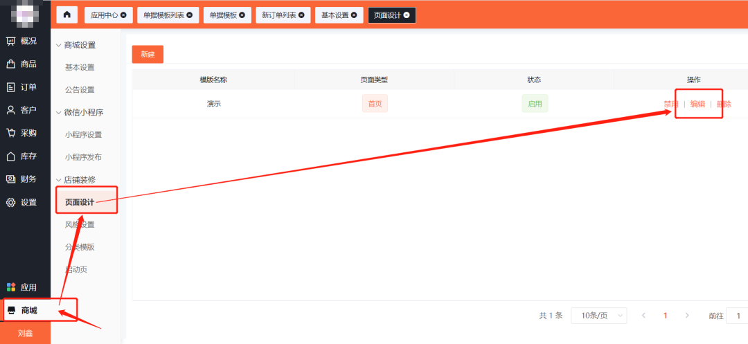 1.我們進(jìn)入商城后臺(tái)的【商城】板塊,然后選擇【頁(yè)面設(shè)計(jì)】,在進(jìn)行編輯首頁(yè)編輯。