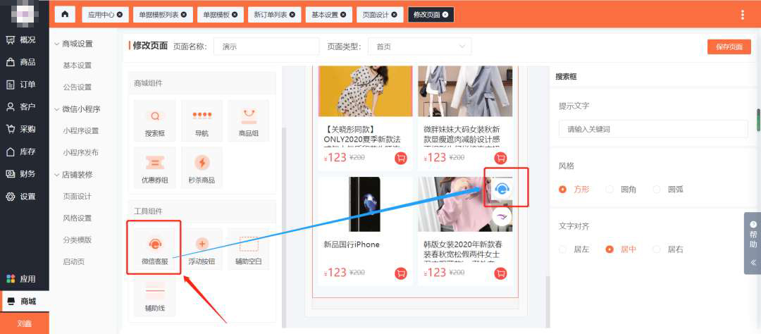 首先呢,我們需要在我們的商城后臺(tái)進(jìn)行配置我們的首頁(yè)客服按鈕。