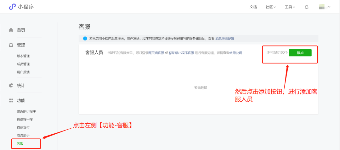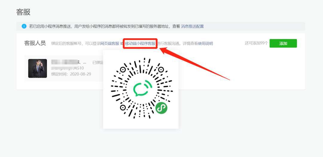 3.組件添加完成后,我需要進(jìn)入我們小程序后臺(tái)進(jìn)行配置添加我們的在線客服人員。