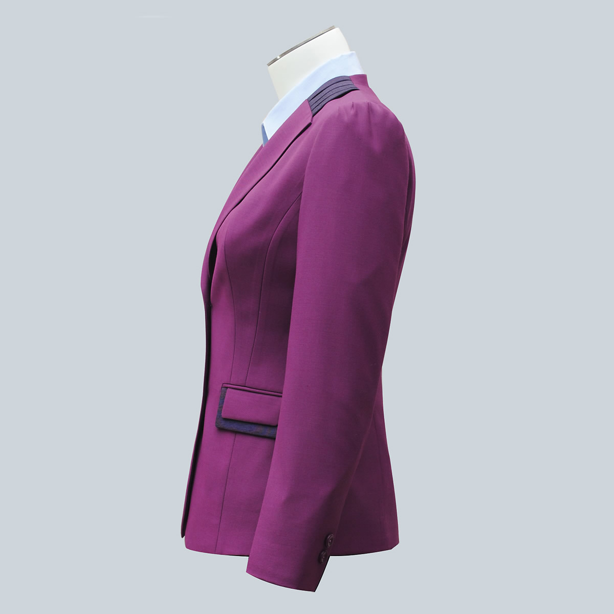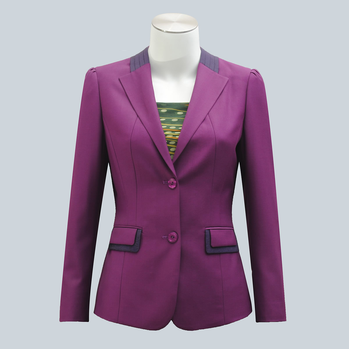 重慶女士修身西服定制:一般采用3D立體剪裁的款式,符合身體曲線,能達(dá)到修身的效果。